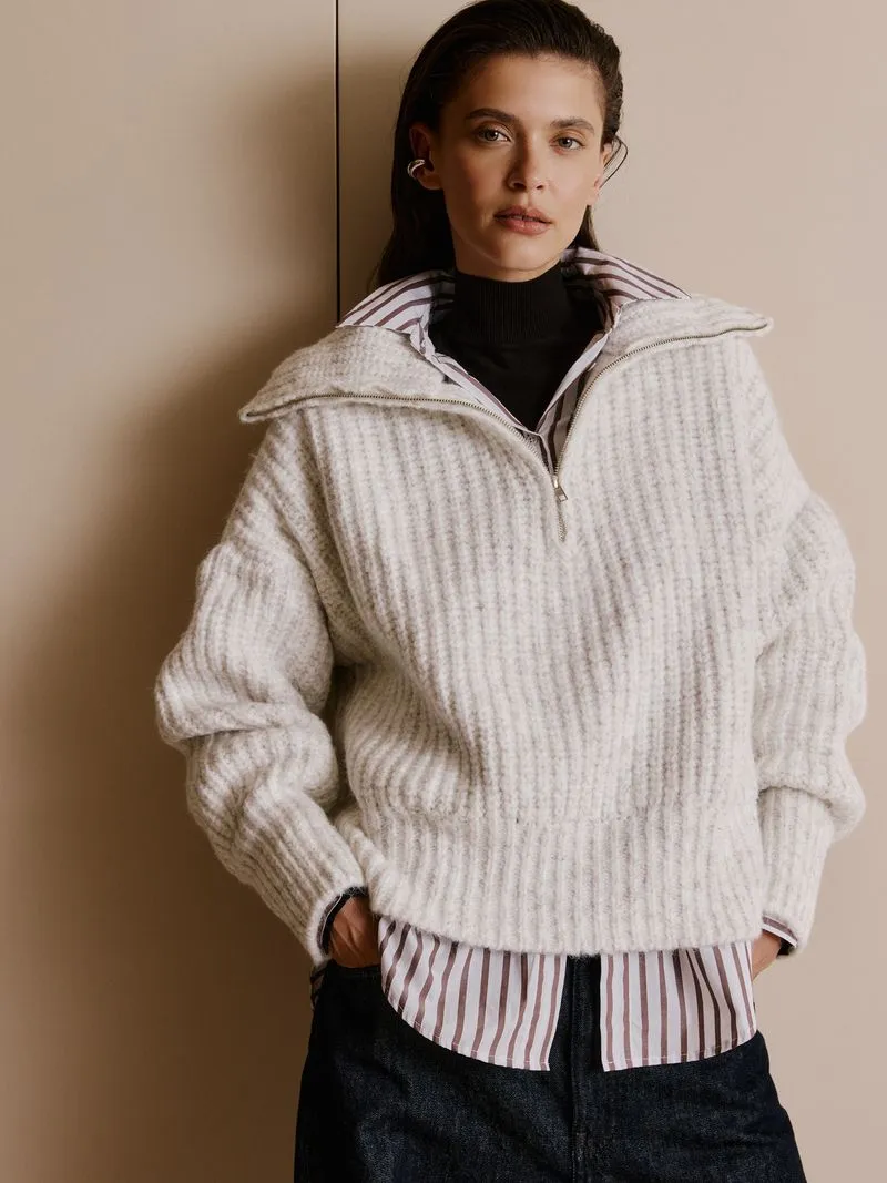 O pullover em ponto pérola combina o charme do artesanal com detalhes contemporâneos. Feito em poliamida, o tricô possui modelagem ampla e gola polo com zíper. É a peça ideal para aquecer seus looks com um toque de sofisticação.