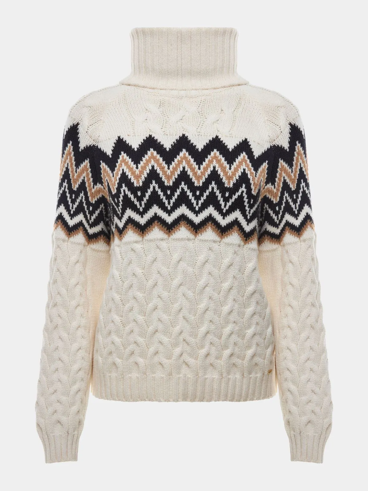 Combinando dois clássicos do tricô, o suéter Glacial traz textura, aconchego e informação de moda em uma única peça. A padronagem gráfica no busto contrasta com o corpo em ponto trança, criando um visual retrô com pegada alpina. A gola avulsa canelada pode ser usada para proteger do frio intenso ou removida para um look mais leve.