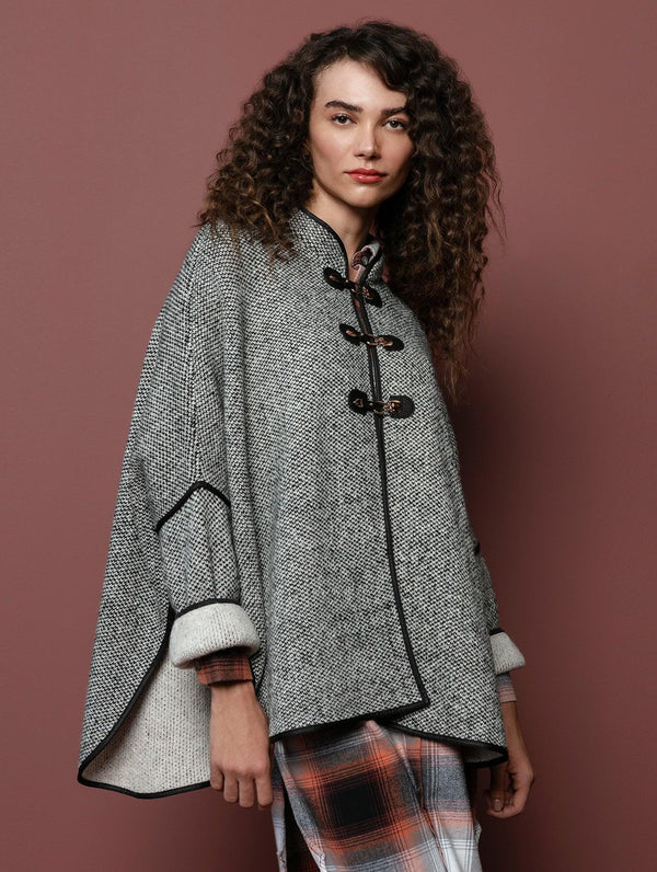 Para esquentar durante o inverno e agregar sofisticação aos looks, escolha a capa mullet com fechamento em alamar e mangas de cava quadrada Biamar. Aconchegante e moderna, possui recorte arredondado e detalhe metálico na cor dourada, fazendo da capa um modelo confortável e estiloso. Descubra o conforto e a elegância da Biamar em cada detalhe desta peça incrível. Não perca a oportunidade de ter uma peça-chave no seu armário.