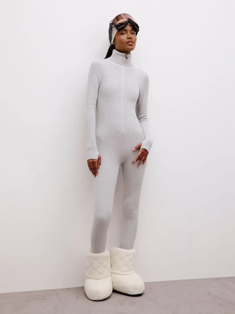 Inspirado no estilo esportivo e dinâmico das montanhas, o macacão canelado é uma peça versátil e elegante. Com gola chaminé e abertura em zíper na parte frontal, o tricô-desejo é ideal para acompanhar seus momentos fora da pista.